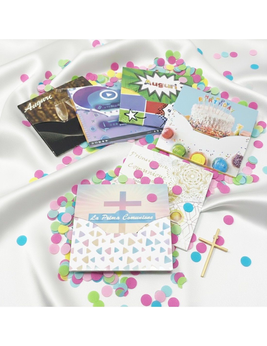 Eleganti e colorate, i nostri porta soldi per la Prima Comunione rappresentano la soluzione ideale per chi desidera regalare del denaro in modo raffinato e non banale. Realizzate in robusto cartoncino e decorate con grafiche moderne dedicate sia a bambini che a bambine. La particolare lavorazione con stampa UV e la...